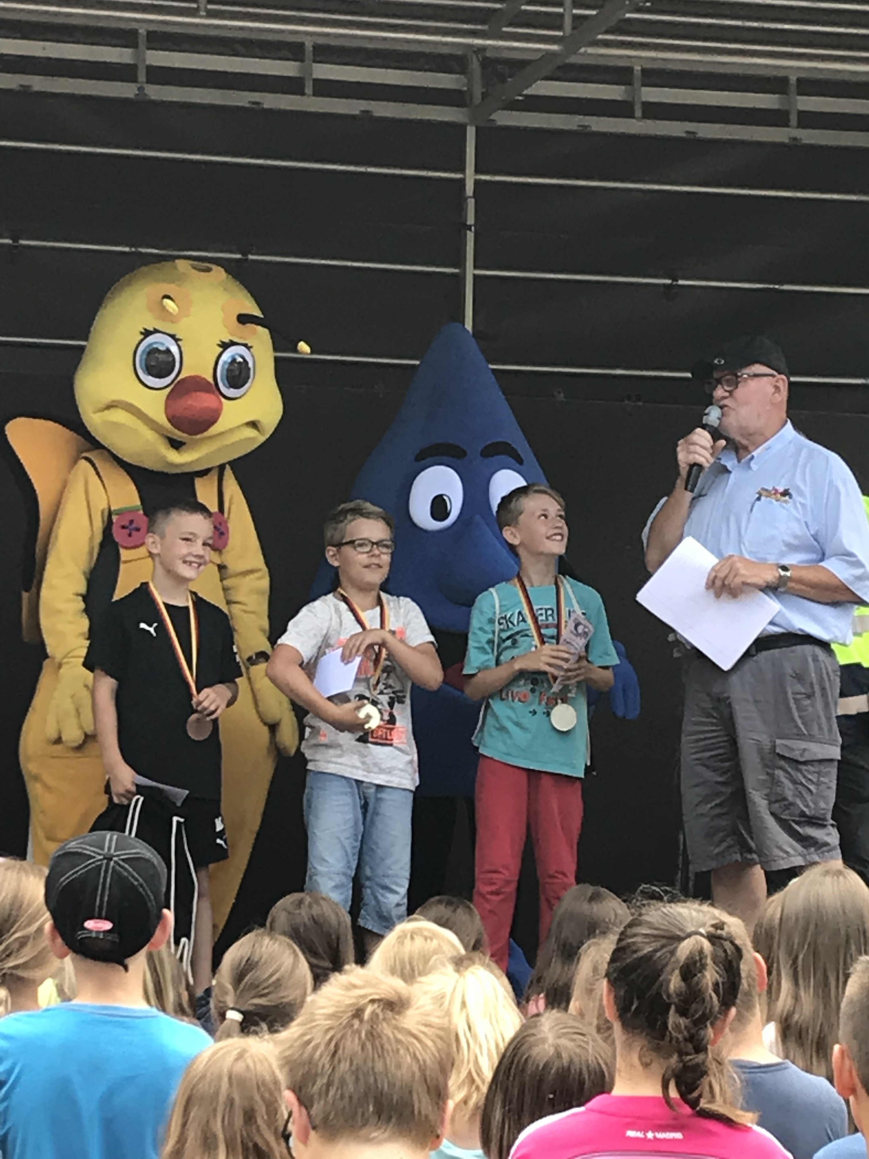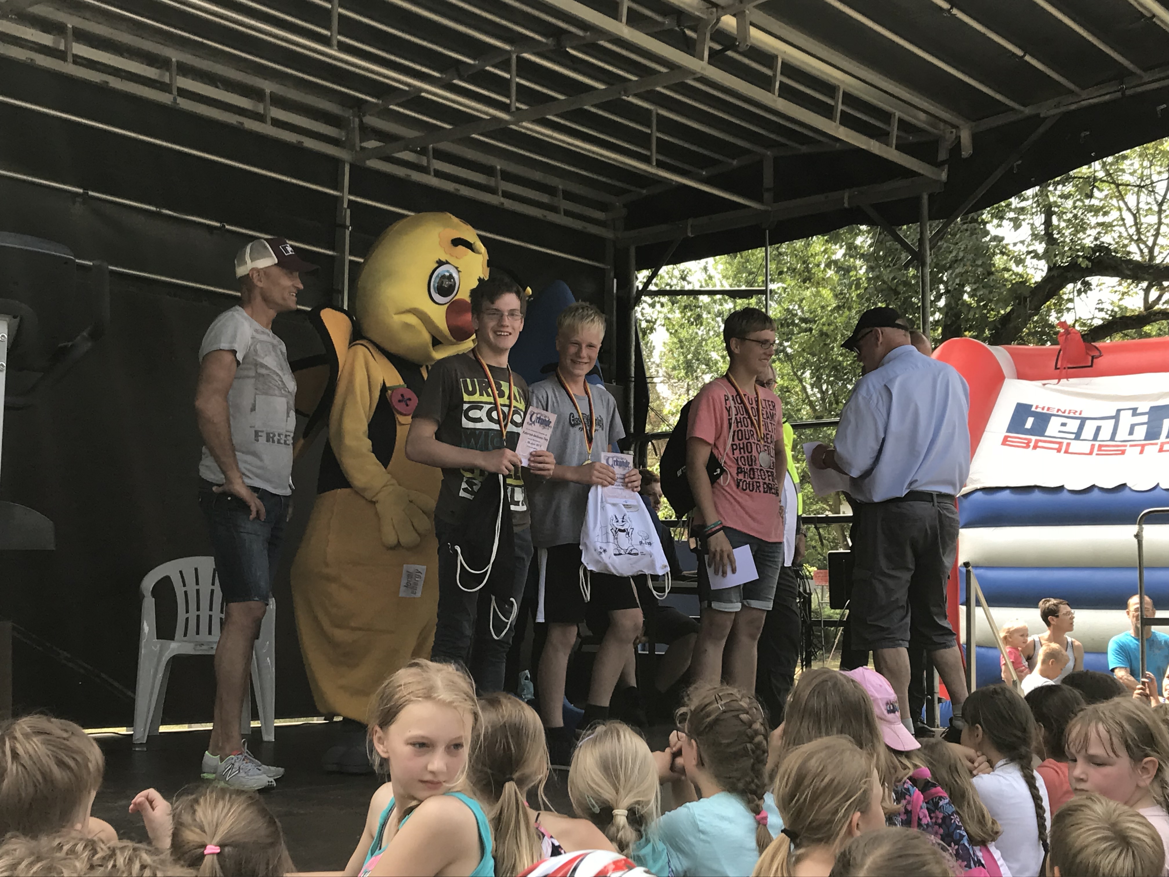 Um die Wartezeit nicht zu lang werden zu lassen, hatten die Schüler auch in diesem Jahr die Möglichkeit auf einer Hüpfburg der Firma Benthack herum zu tollen.